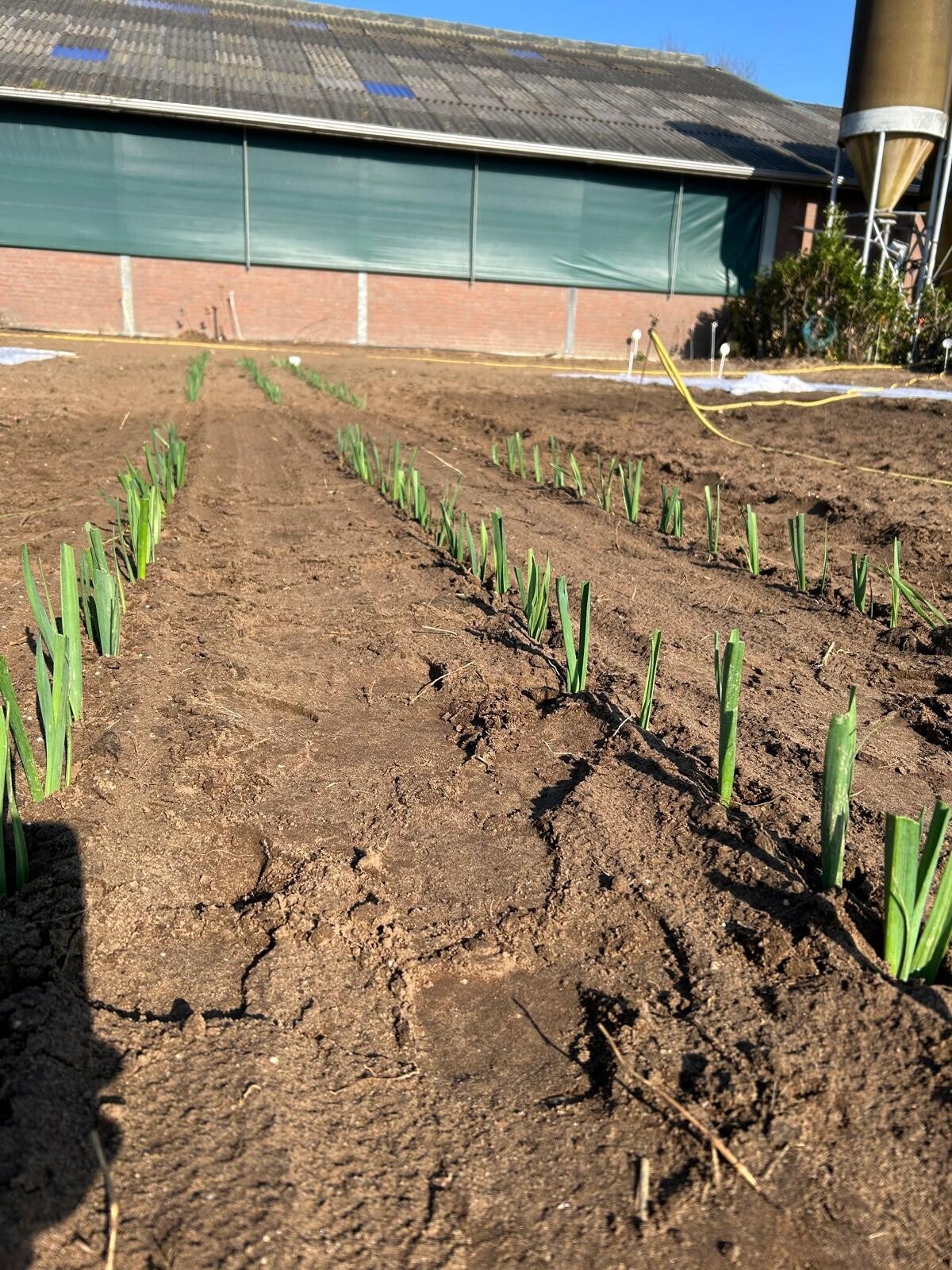 Tijdens de groei houden we de prei goed in de gaten op ziektes en plagen die kunnen toe treden. We geven de prei ook wat bij bemesting na het schoffelen zodat deze in combinatie met wat water en zonlicht lekker verder kan groeien.